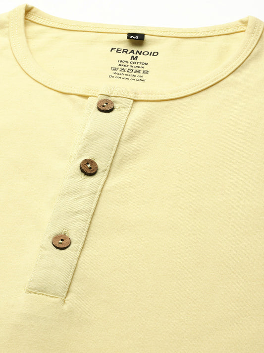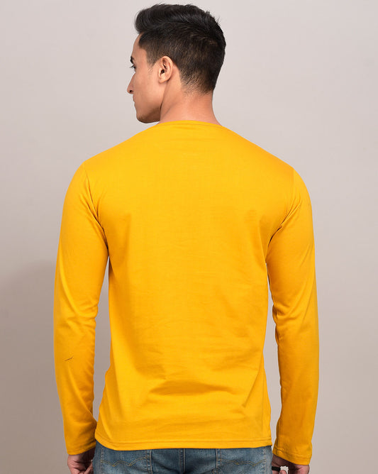 Plain Lemon Yellow Henley Full Sleeves T-Shirt