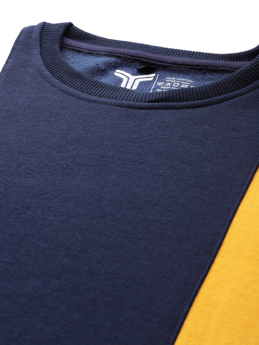 COLOR BLOCK MUSTARD WHITE BLUE SWEATSHIRT