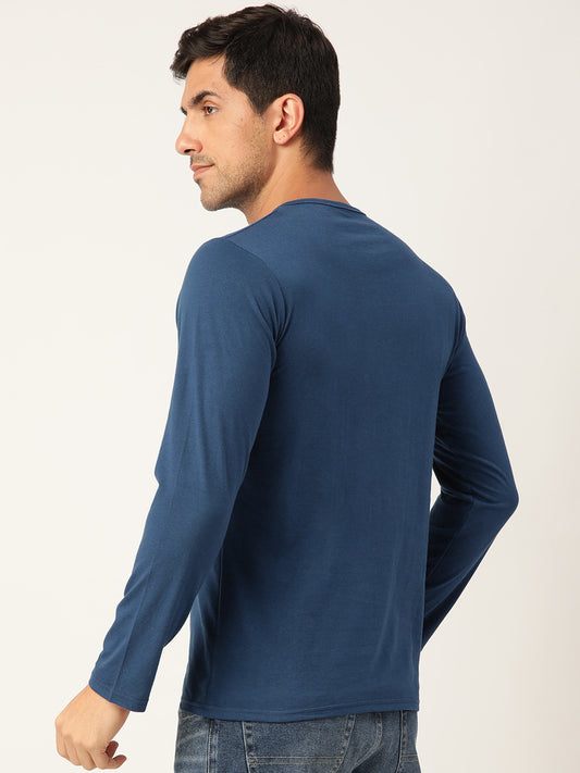 Plain Teal Blue Henley Full Sleeves T-Shirt