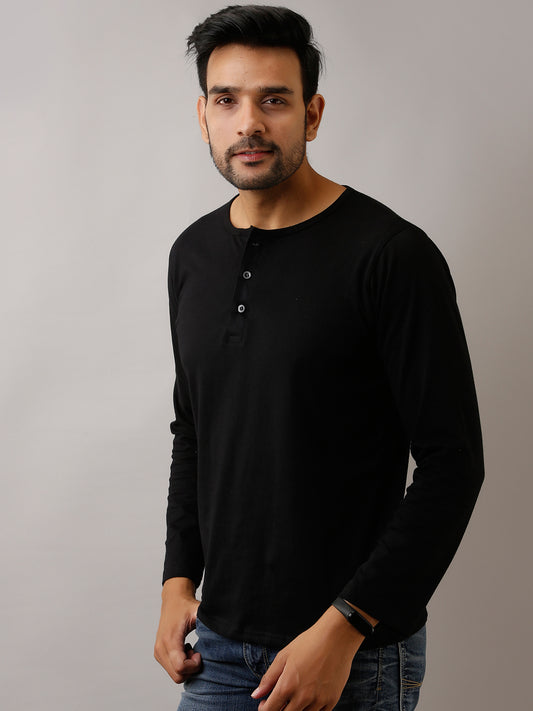 Sold outPLAIN BLACK FULL SLEEVE HENLEY