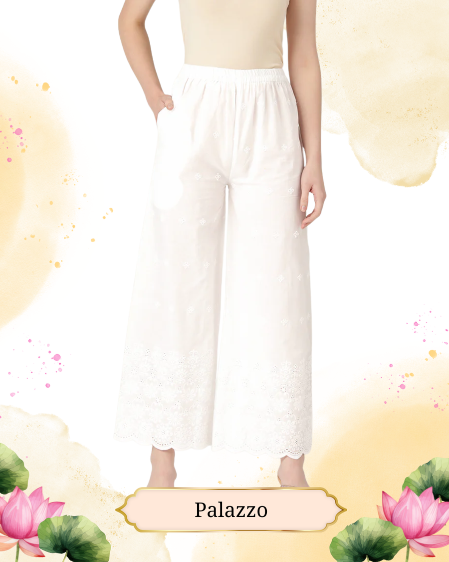 Beige Palazzos | Embroidered Elegnace With Elastic Waist & Single Pocket →