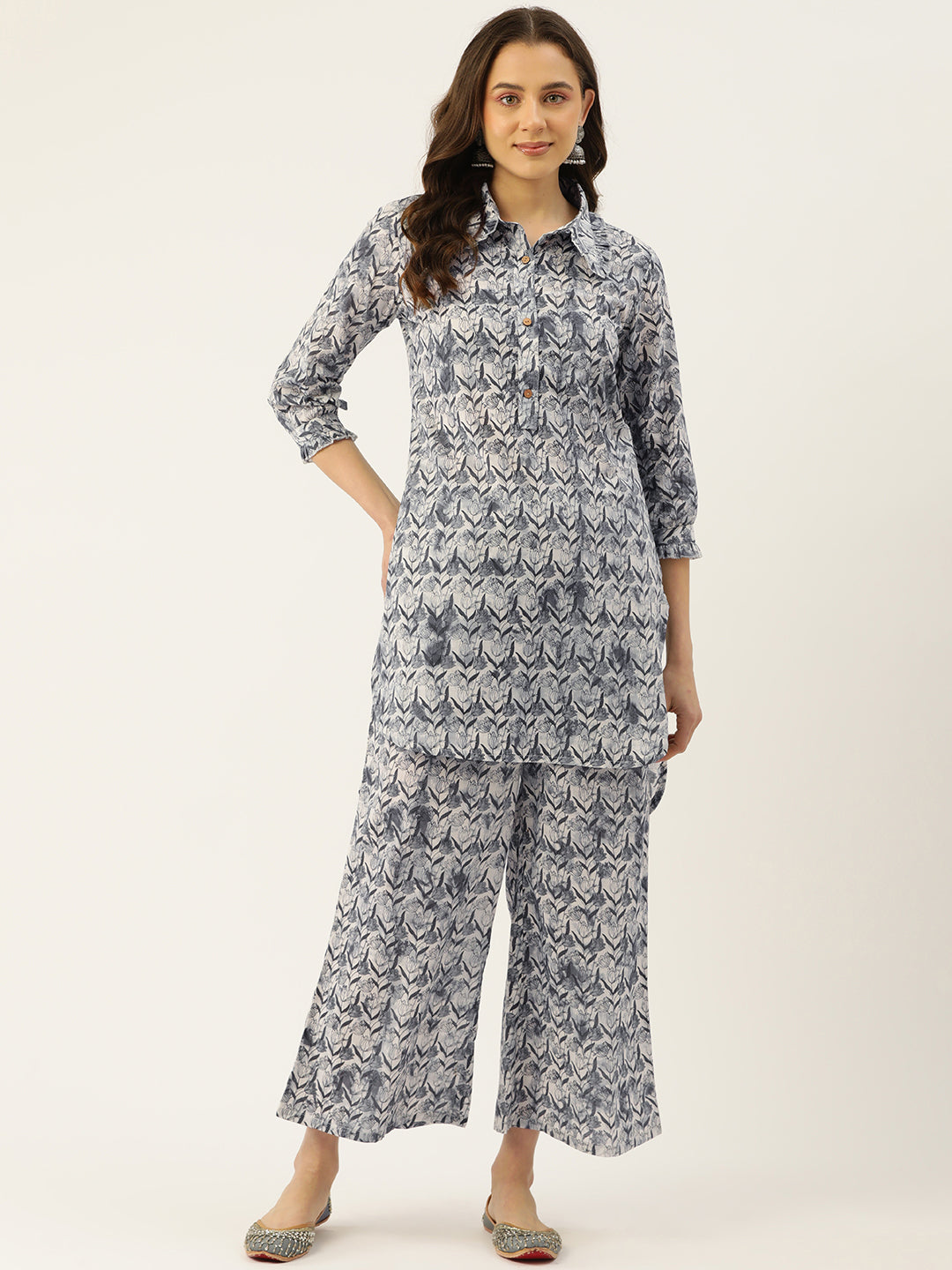 Elevate your everyday wardrobe with our Collared Co-Ord Set, designed to blend timeless elegance with modern comfort. Featuring a stylish kurti with a classic collared neckline and delicate frill detailing, this set exudes subtle sophistication. Crafted from soft and lightweight fabric, it ensures all-day comfort and ease of movement.The elasticated pants provide a flexible and comfortable fit, making this set perfect for casual outings, office wear, or brunches. The sophisticated design of the co-ord set makes it a versatile wardrobe staple, combining style and practicality effortlessly.