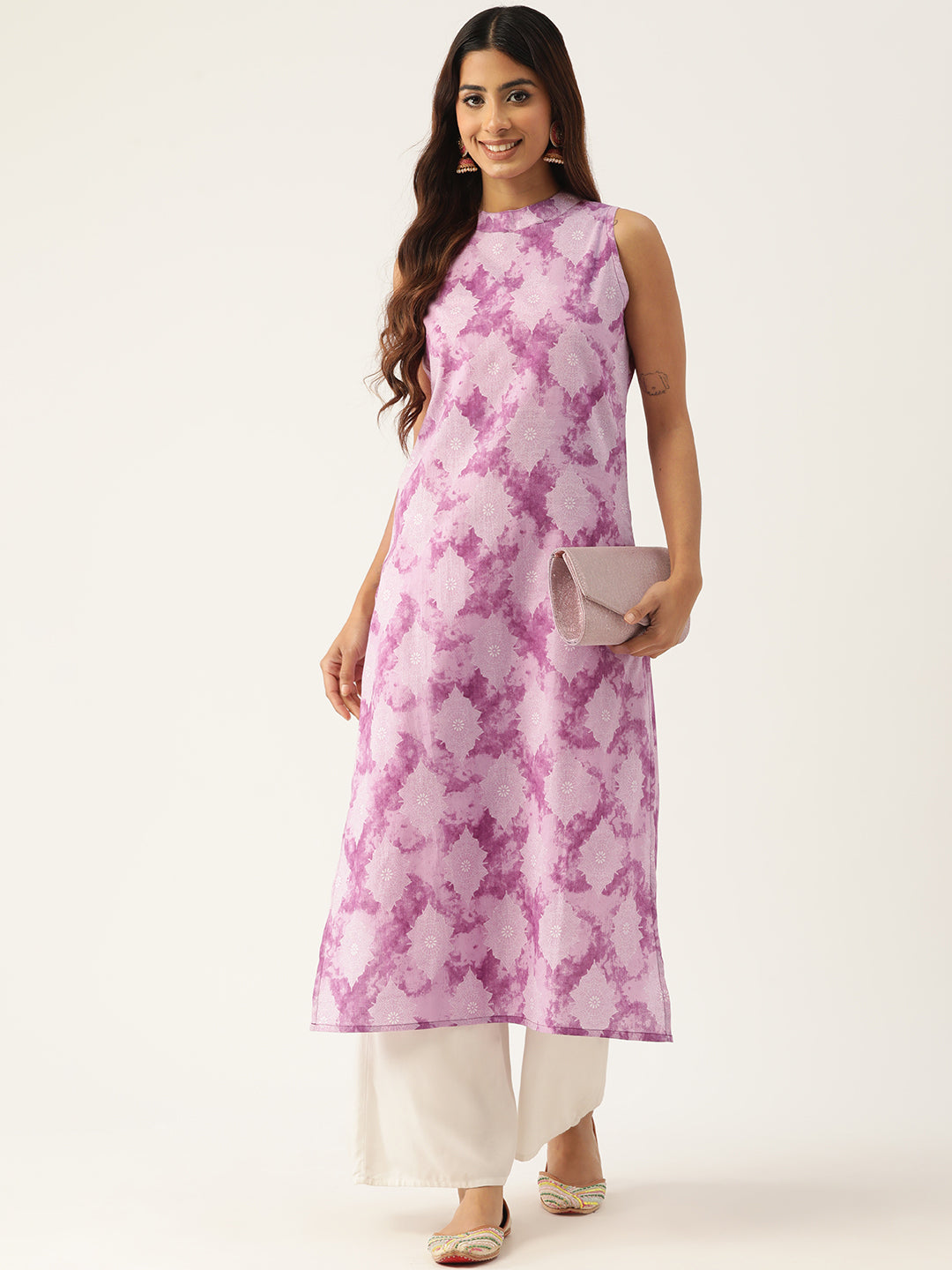 Cotton Printed Sleeveless Straight Long Kurti