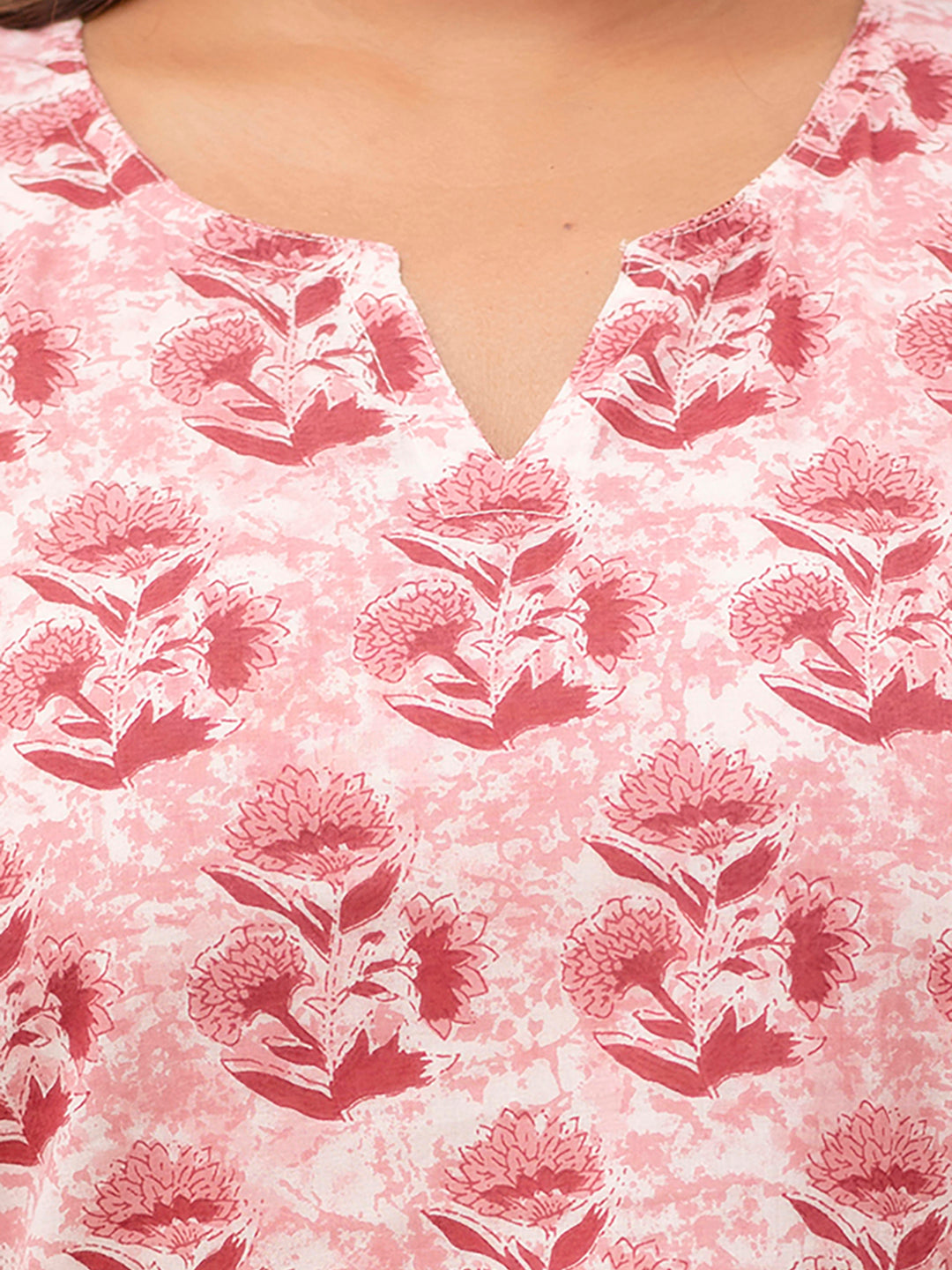 • Soft & Breathable Cotton Fabric• Elegant Pink Color with Printed Design• Comfortable V-Neck Kurti
