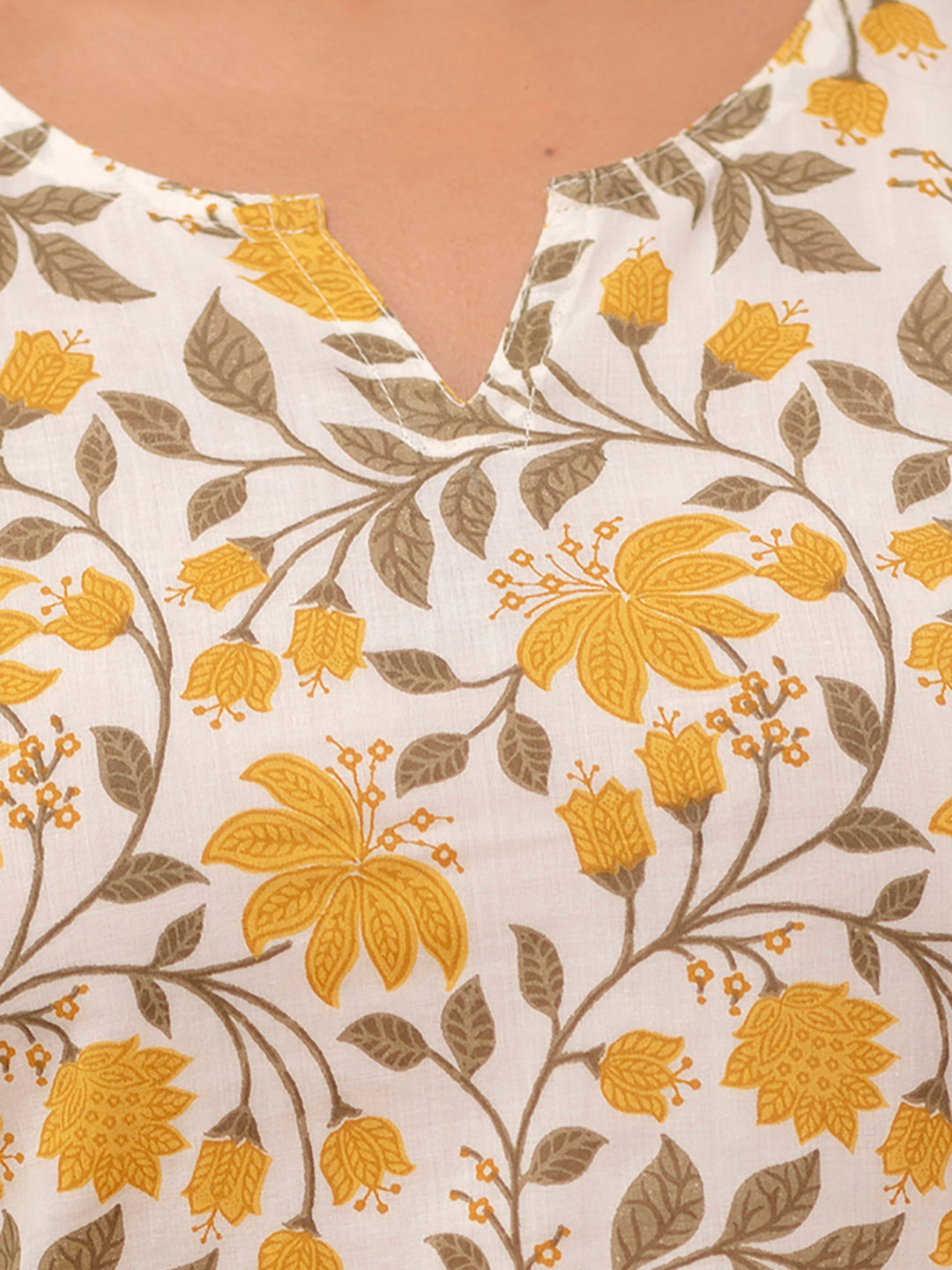 • Soft & Breathable Cotton Fabric• Elegant White Color with Printed Design• Comfortable V-Neck Kurti