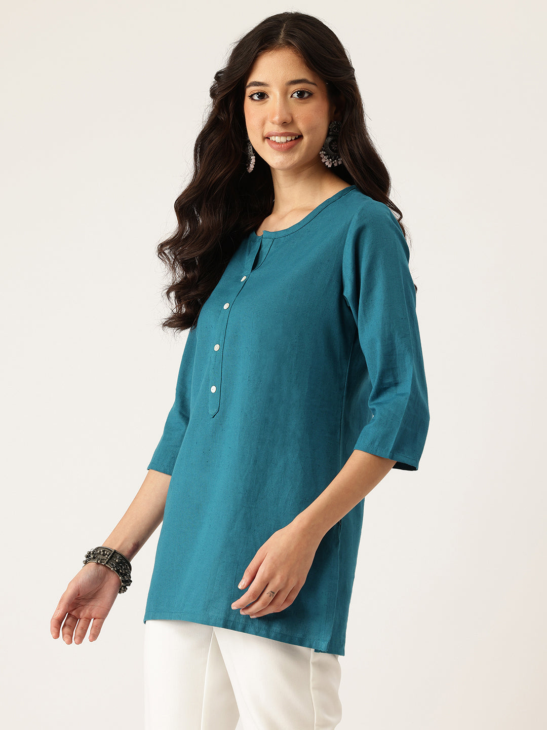 Elegant Short Kurti for Women –Button Detailing & 3/4 Sleeves | Round Neck |