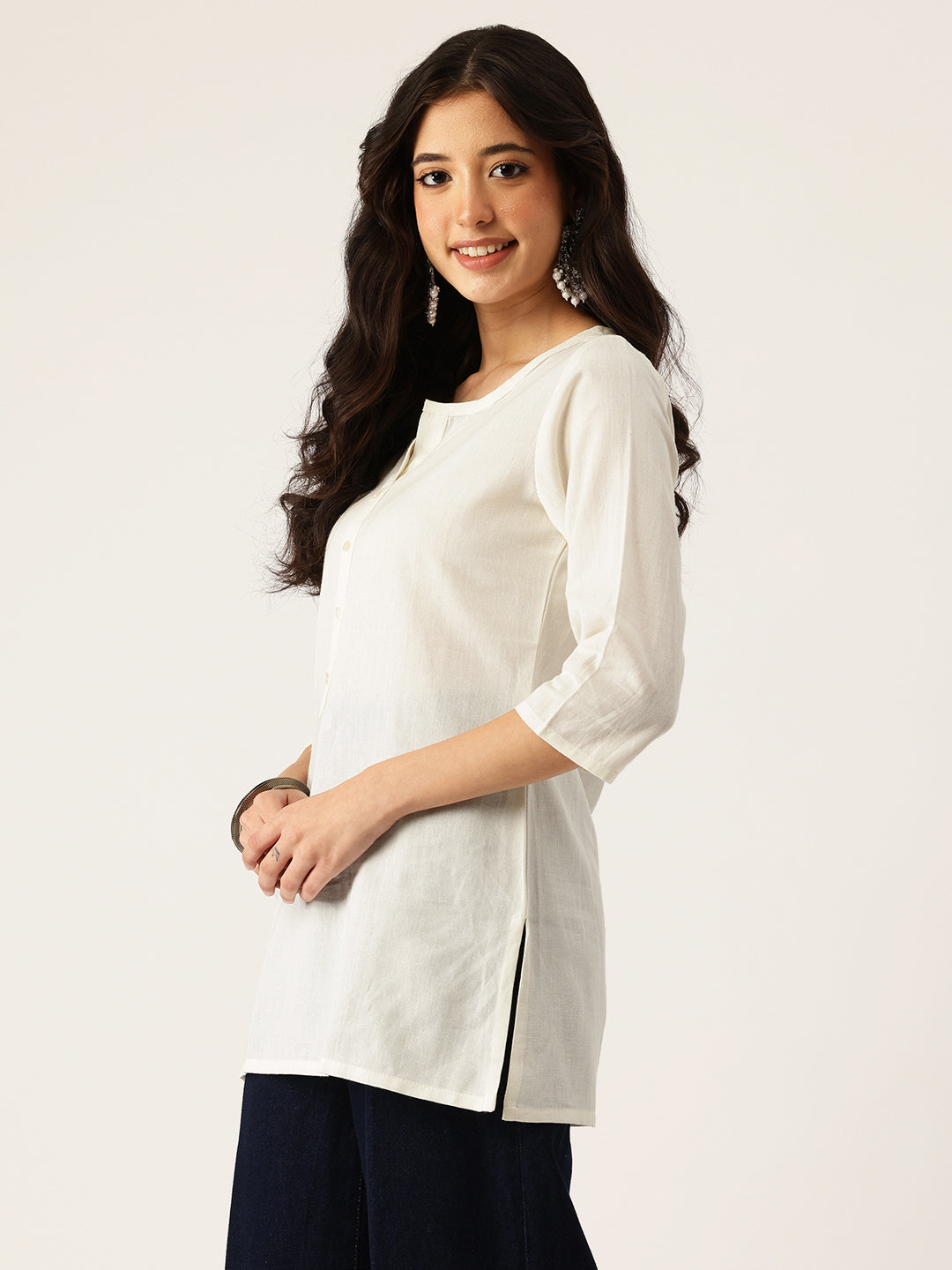 Elegant Short Kurti for Women –Button Detailing & 3/4 Sleeves | Round Neck |