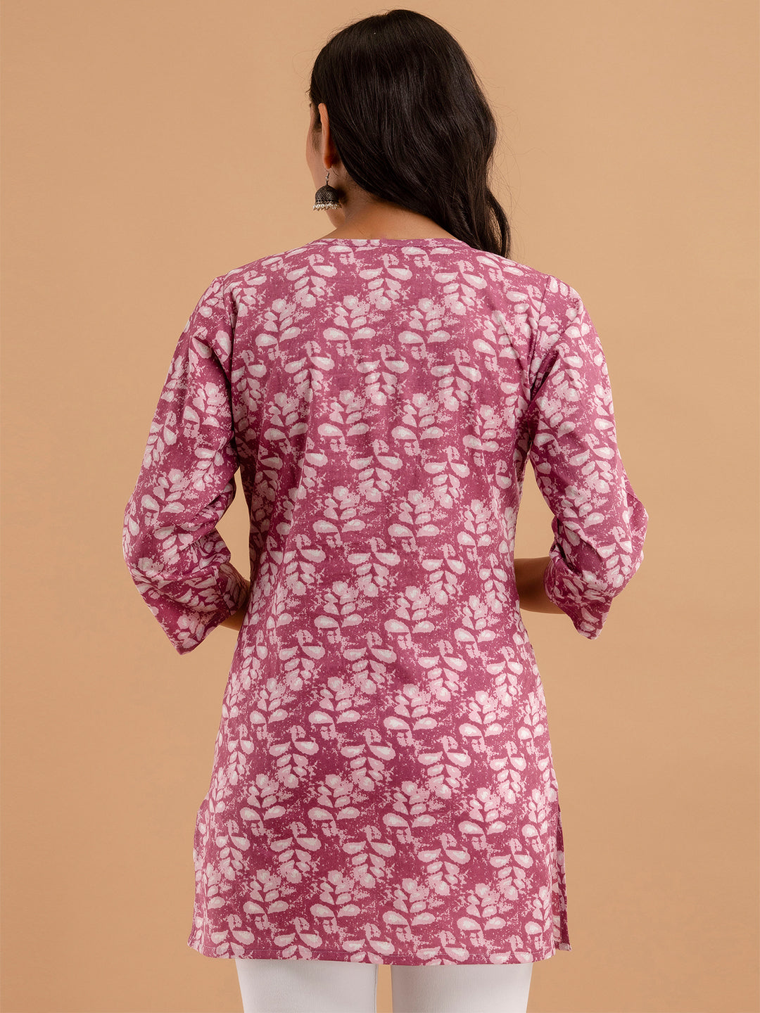 Women Mauve Cotton Printed Short Kurti