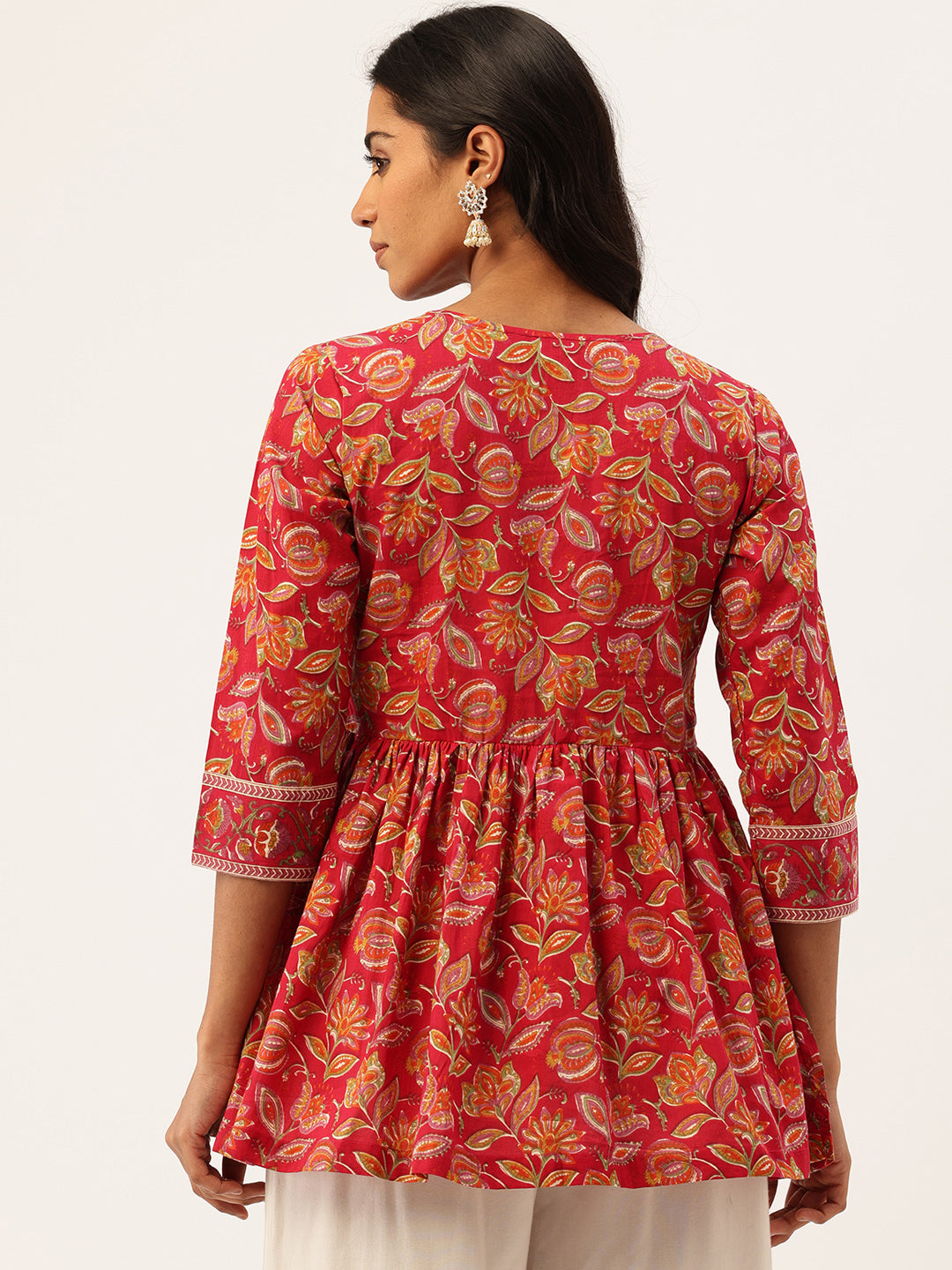 Cotton Printed V-Neck Sleeveless Short Kurti