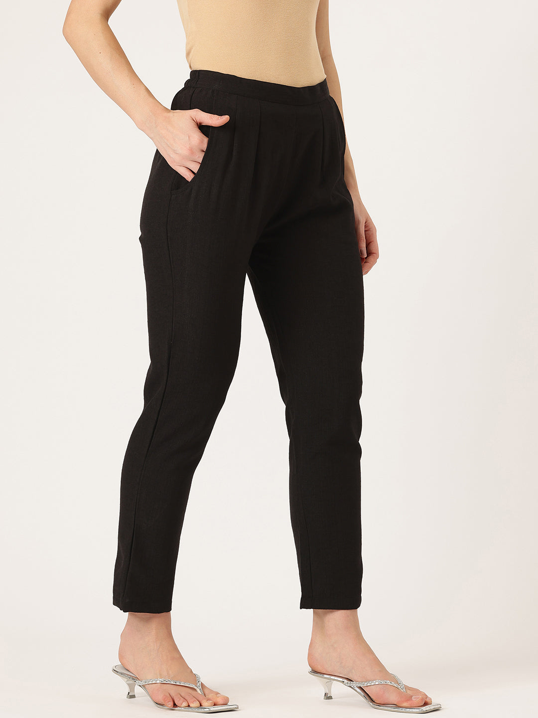 Elevate your wardrobe with our Linen Double-Pocket Pants, a perfect blend of comfort, style, and functionality. Crafted from soft, breathable Linen, these pants are designed to keep you comfortable all day long while adding a chic touch to your look. Made from breathable and lightweight linen fabric, these ankle-length pants offer a smart and polished look.The partially elasticated waistband ensures a comfortable and flexible fit, while the double pockets add practicality and convenience. Perfect for office wear, casual outings, or semi-formal occasions, these trousers pair easily with tops, shirts, or kurtis.