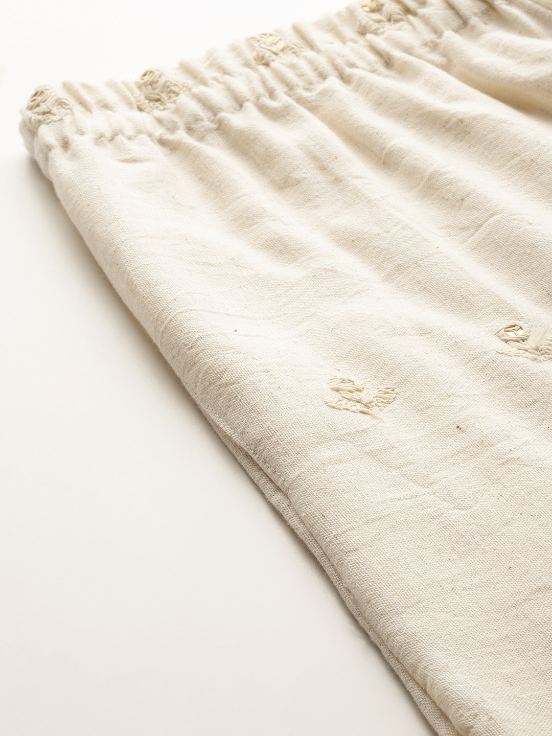 Elevate your everyday style with our Beige Embroidered Sequin Palazzos, designed for both elegance and comfort. Crafted from soft, breathable flax cotton fabric, they offer a lightweight feel that's perfect for all-day wear. The elegant embroidery with subtle sequin detailing adds a refined touch to the overall look.Designed in an ankle-length style with a relaxed fit, it ensures ease of movement. The single pocket adds practical convenience, making it perfect for daily wear, office wear, or small festive occasions. Pair it easily with kurtis or ethnic tops for a complete outfit.