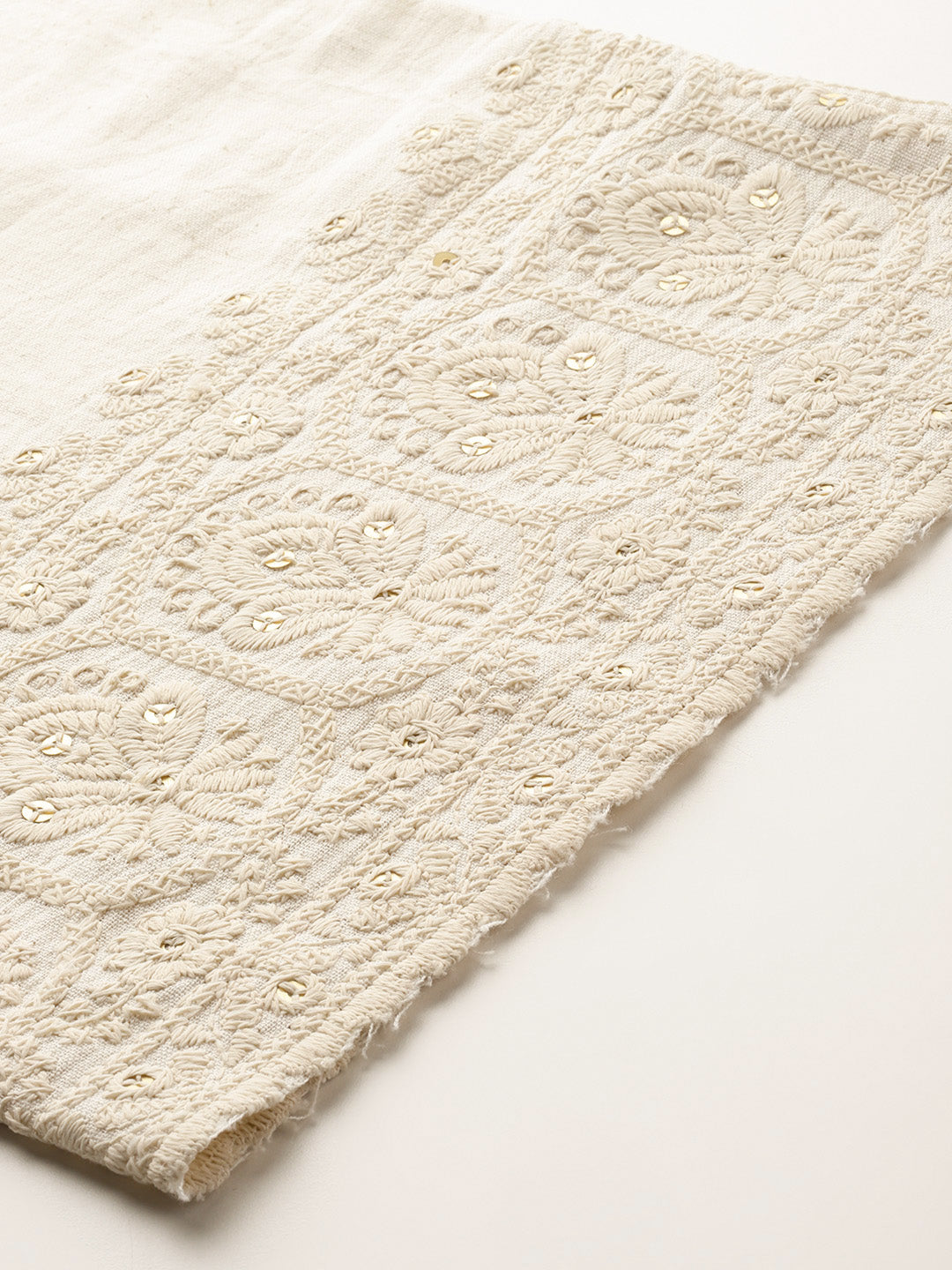 • Flax Cotton Fabric – Soft & Comfortable• Beige Color with Elegant Embroidery• Sequin Detail for Subtle Shine