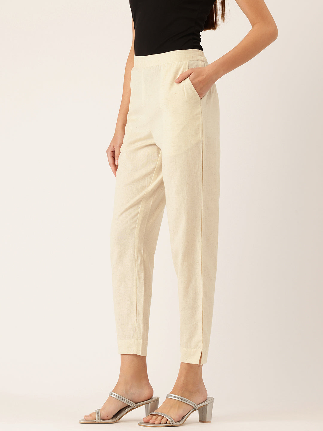 Upgrade your everyday style with these versatile Cotton Trousers, designed for effortless comfort and modern appeal. Crafted from soft, breathable cotton fabric, these pants keep you at ease throughout the day. The practical double-pocket design adds functionality, while the partially elasticated waistband with inner drawstring ensures a secure and adjustable fit. Finished with a sleek ankle-length silhouette, these trousers are perfect for casual outings, work-from-home days, or relaxed evenings. A timeless essential that blends simplicity with style.
