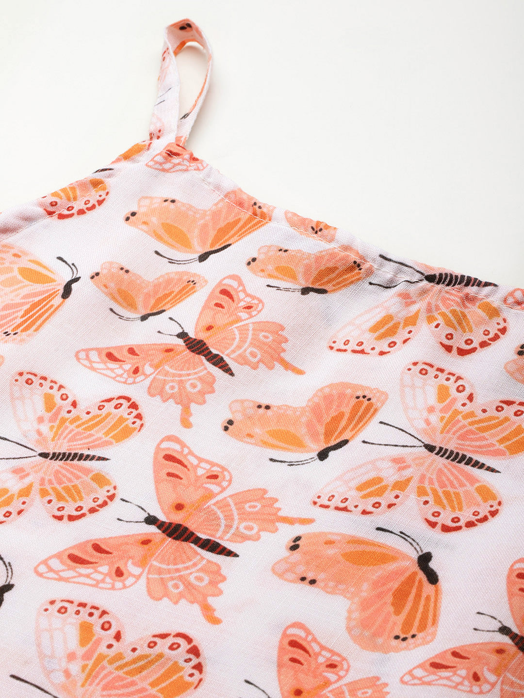 Cropped Sleeveless strap Peplum top with digital print on linen fabric.| Size- Small| Colour - White, Peach