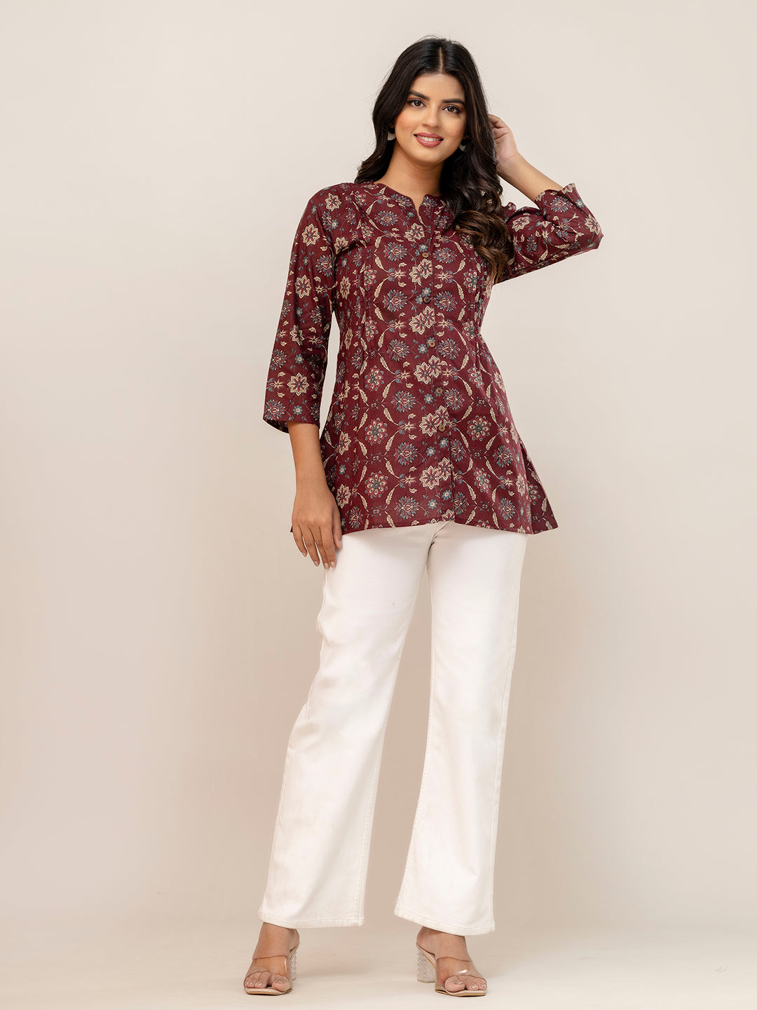 Elegant Mandarin Collar Printed Tunic – Stylish & Comfortable, Sizes