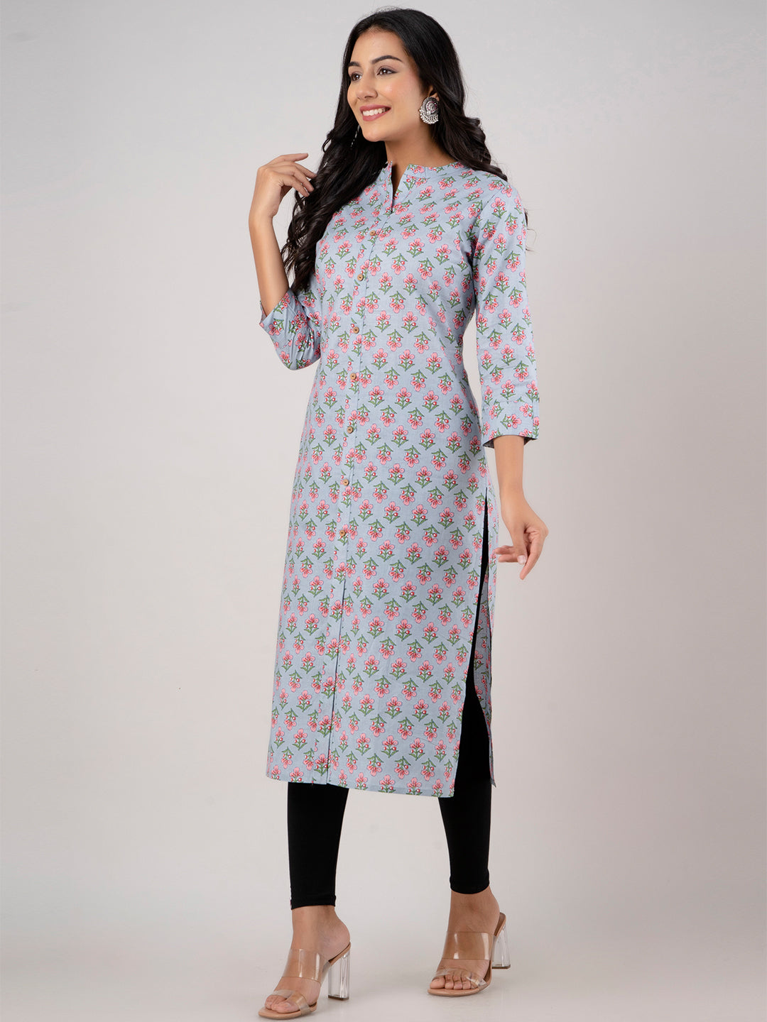 Feranoid Straight Knee Length Grey Colour Kurta For Women