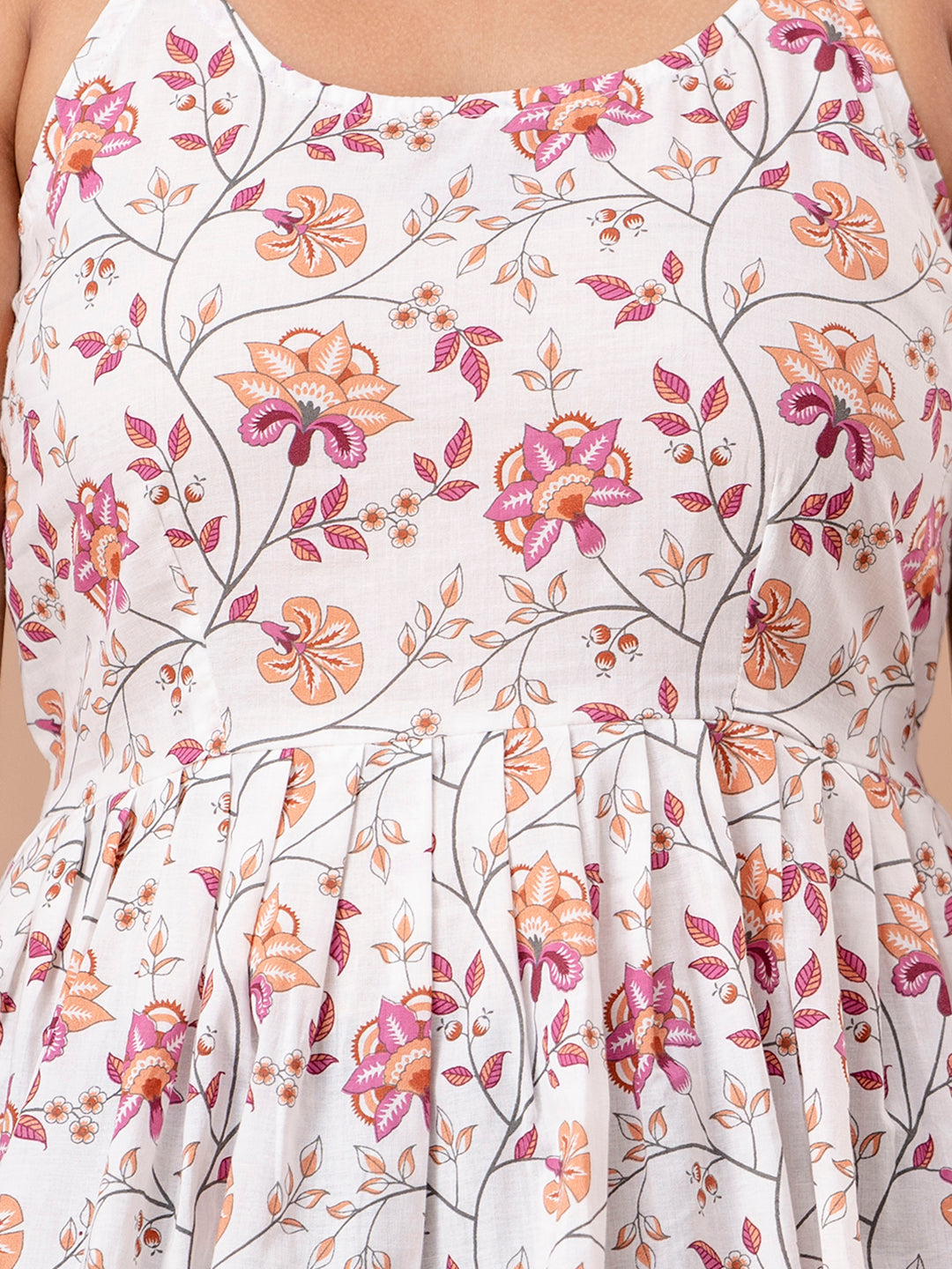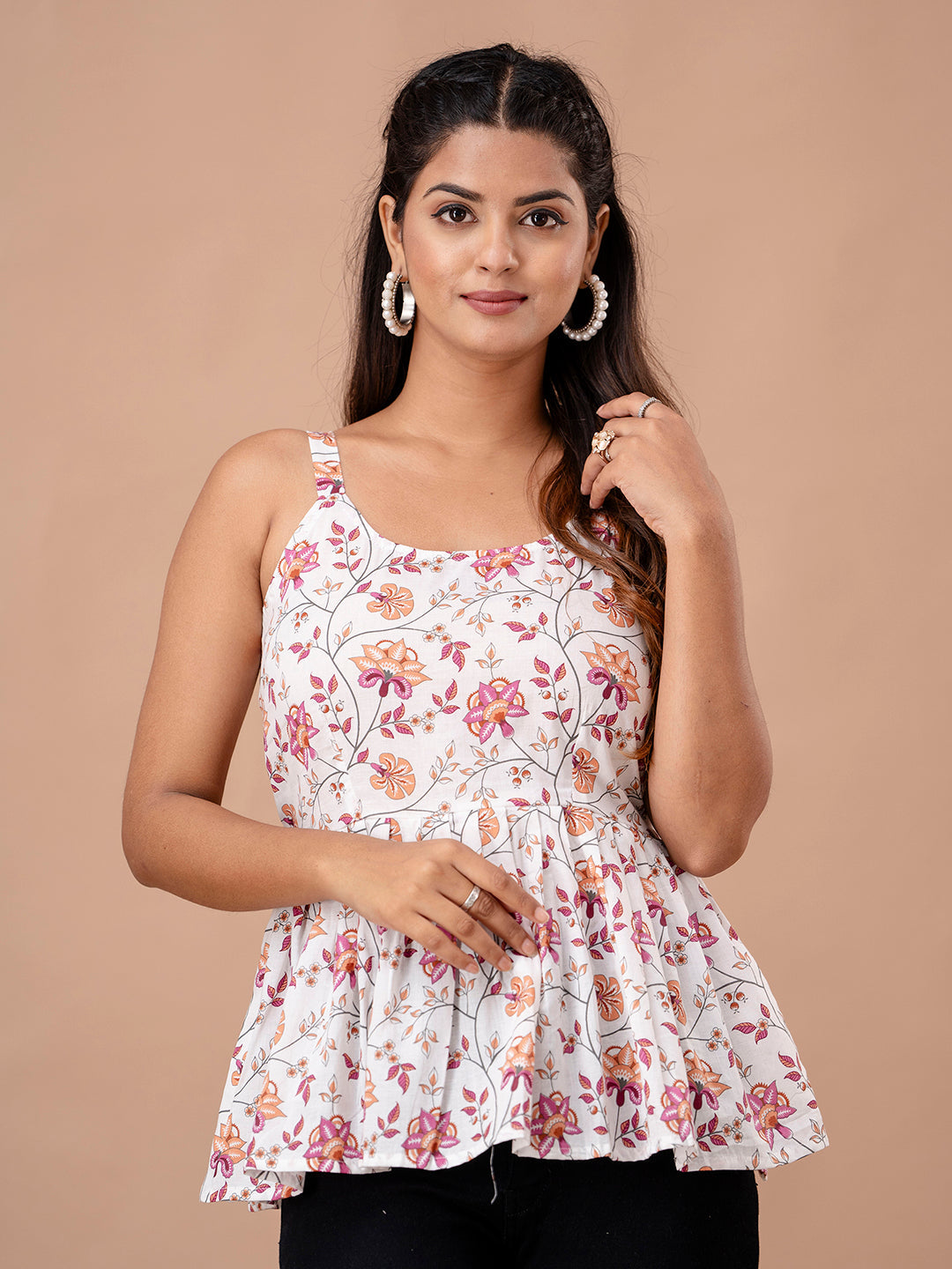 Made from soft, breathable cotton with a machine weave, it ensures all-day comfort while keeping your look effortlessly stylish. The round neckline and sleeveless design make it perfect for warm weather, while the gathered peplum silhouette adds a flattering and feminine charm.