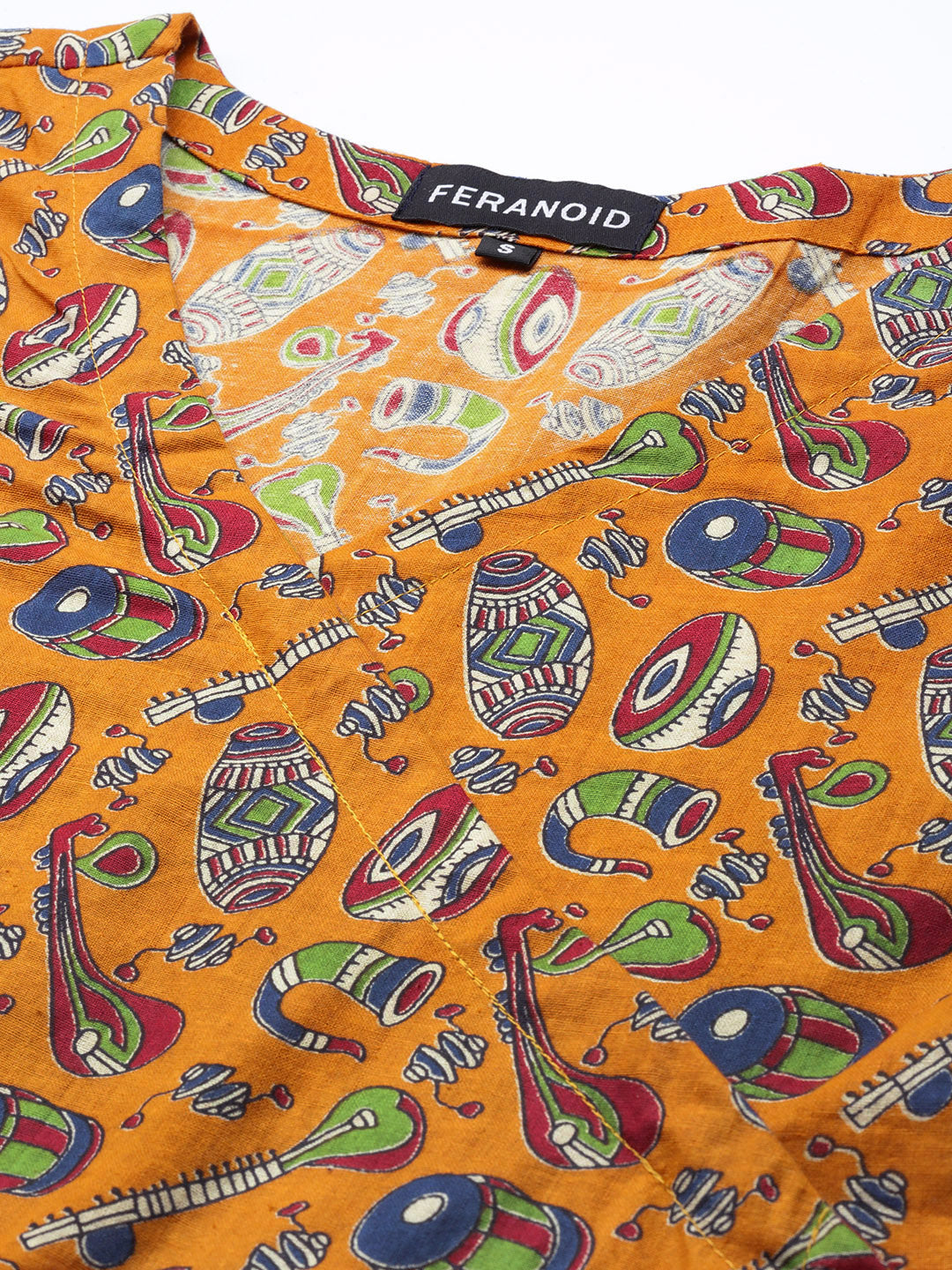 Made from pure cotton, it features a flattering V-neck and three-quarter sleeves for a graceful look. The floral print brings a fresh festive appeal, while the flared hemline adds elegance and ease of movement. Ideal for festive occasions, daytime celebrations, or casual gatherings.
