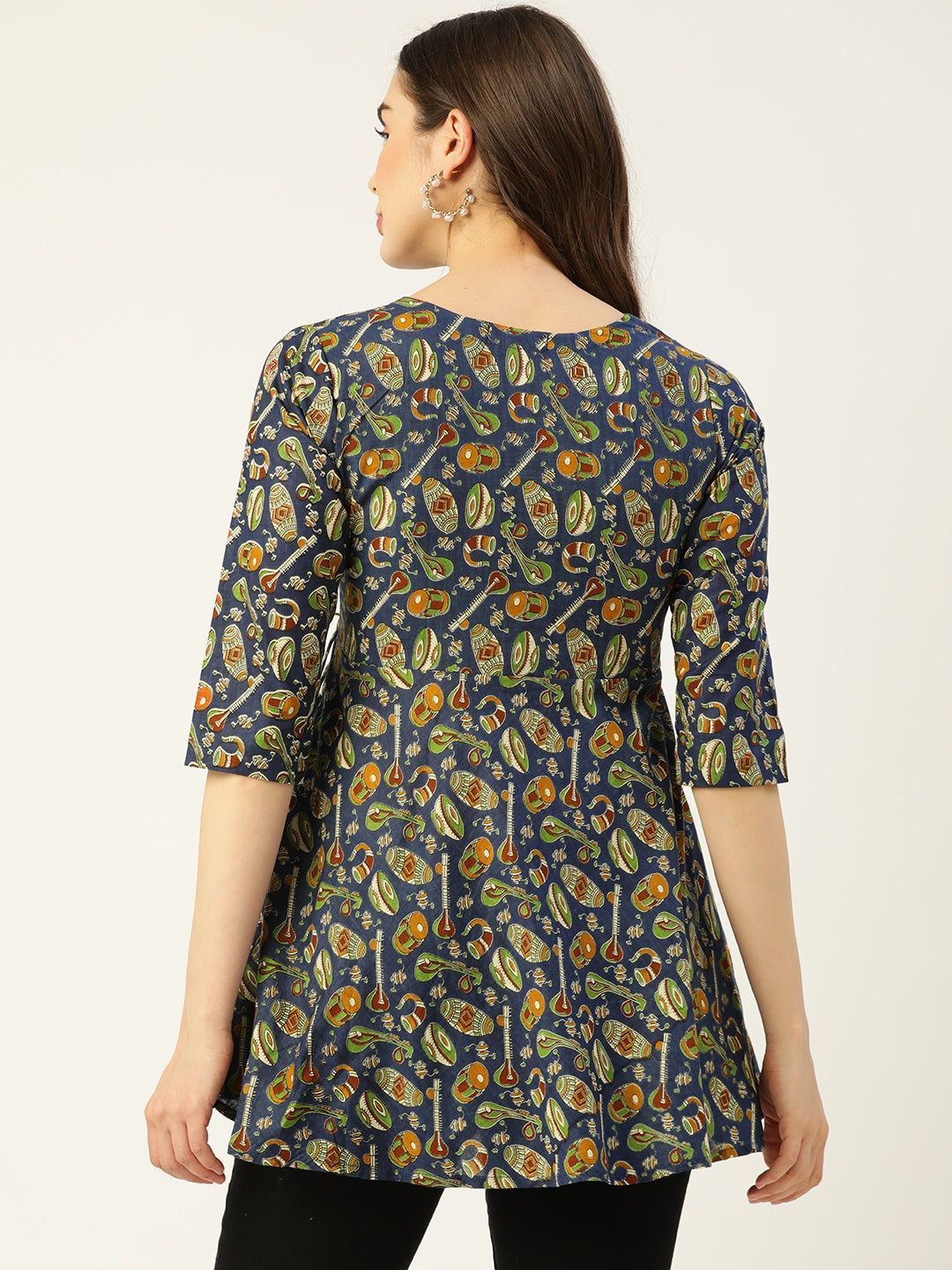 Made from pure cotton, it features a flattering V-neck and three-quarter sleeves for a graceful appearance. The floral print adds a refreshing charm, while the flared hemline gives a stylish finish. Ideal for festive occasions, day events, or casual celebrations.