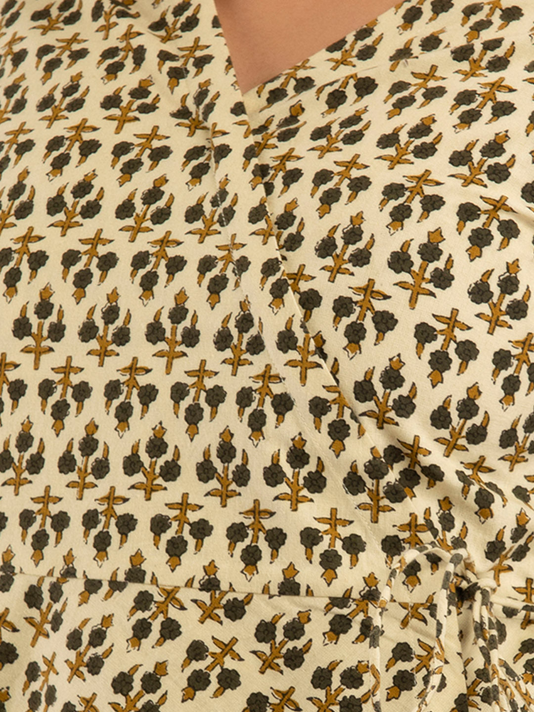 . The V-neck design and three-quarter sleeves create an elegant silhouette, while the floral print adds a refreshing touch. Finished with a flared hemline, this tunic is perfect for festive occasions, daytime celebrations, or casual gatherings.