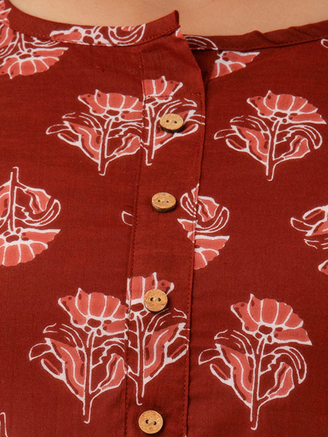 Women Red Cotton Printed Short Kurti