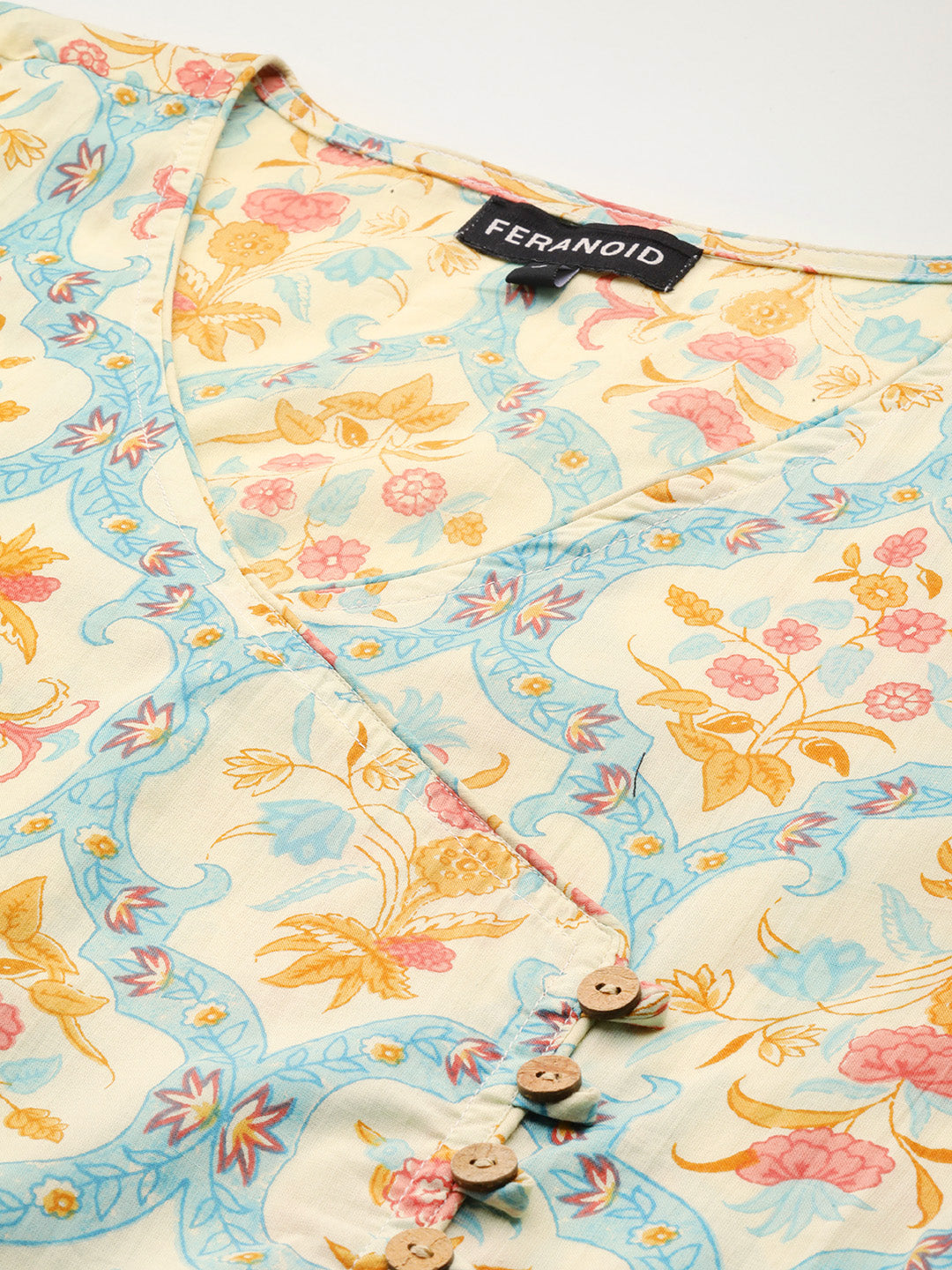 Floral Print 4 Button Angrakha Long Kurti