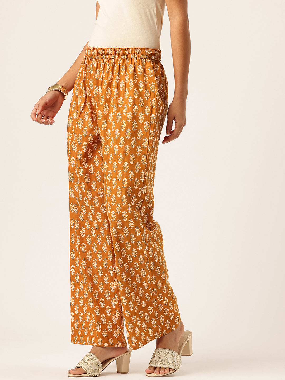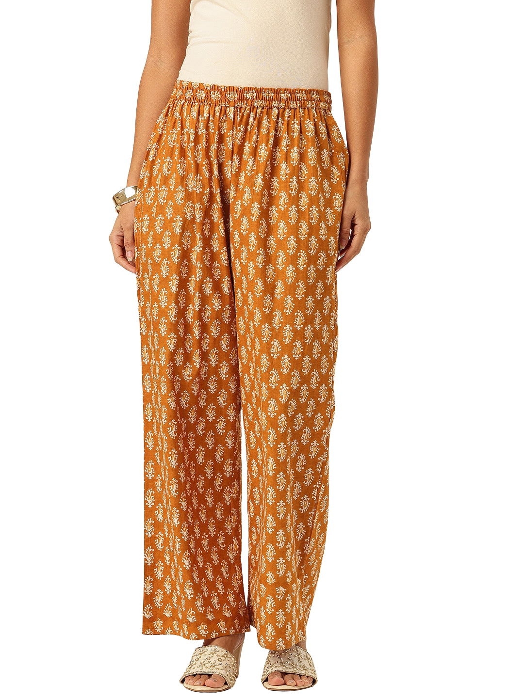 • 100% Pure Cotton Fabric – Soft & Breathable• Attractive Gold Color with Paisley Print• Comfortable Wide-Leg Silhouette