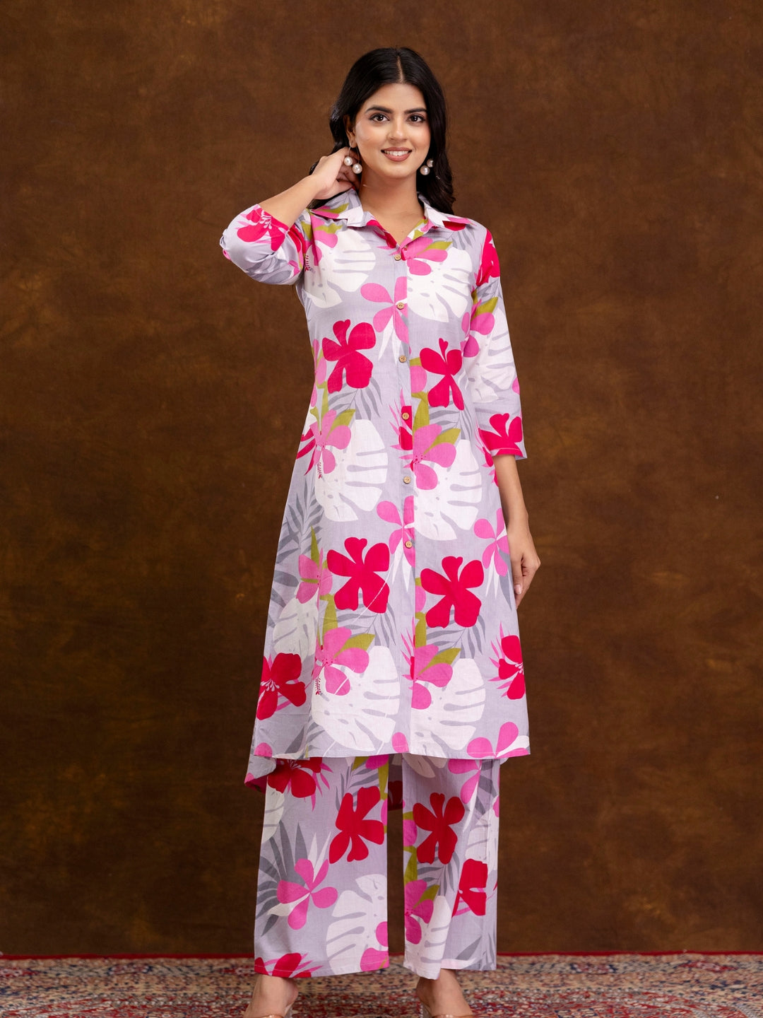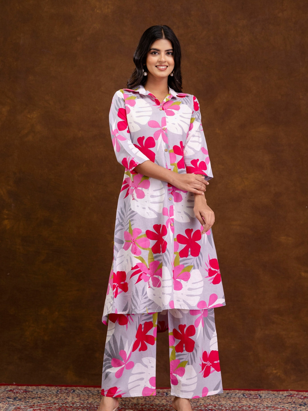 Crafted from soft, breathable fabric, the kurta offers a flattering silhouette while the fully elasticated ankle-length pants ensure all-day ease and flexibility. The printed collared kurta with 3/4 sleeves offers a smart and refined look, making it suitable for both casual and semi-formal occasions.Paired with elastic waist pants, this set ensures a flexible and comfortable fit for all-day wear. Crafted from lightweight and breathable fabric, it keeps you feeling fresh and confident whether at work, outings, travel, or daily home wear.