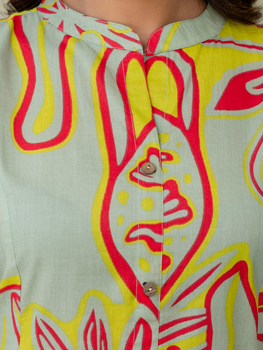Luxury Mandarin Collar Printed Co-Ord Set with Button Detail A-Line Kurta & Comfort Fit Pants