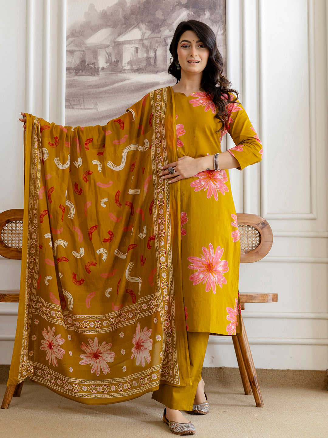 Printed Cotton Kurta Set with Ankle-Length Pants and Graceful Dupatta