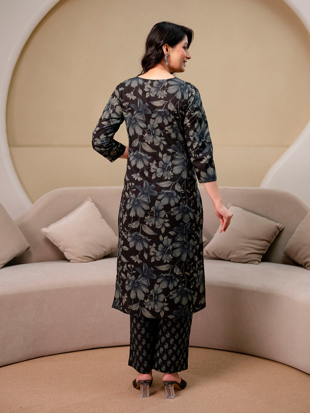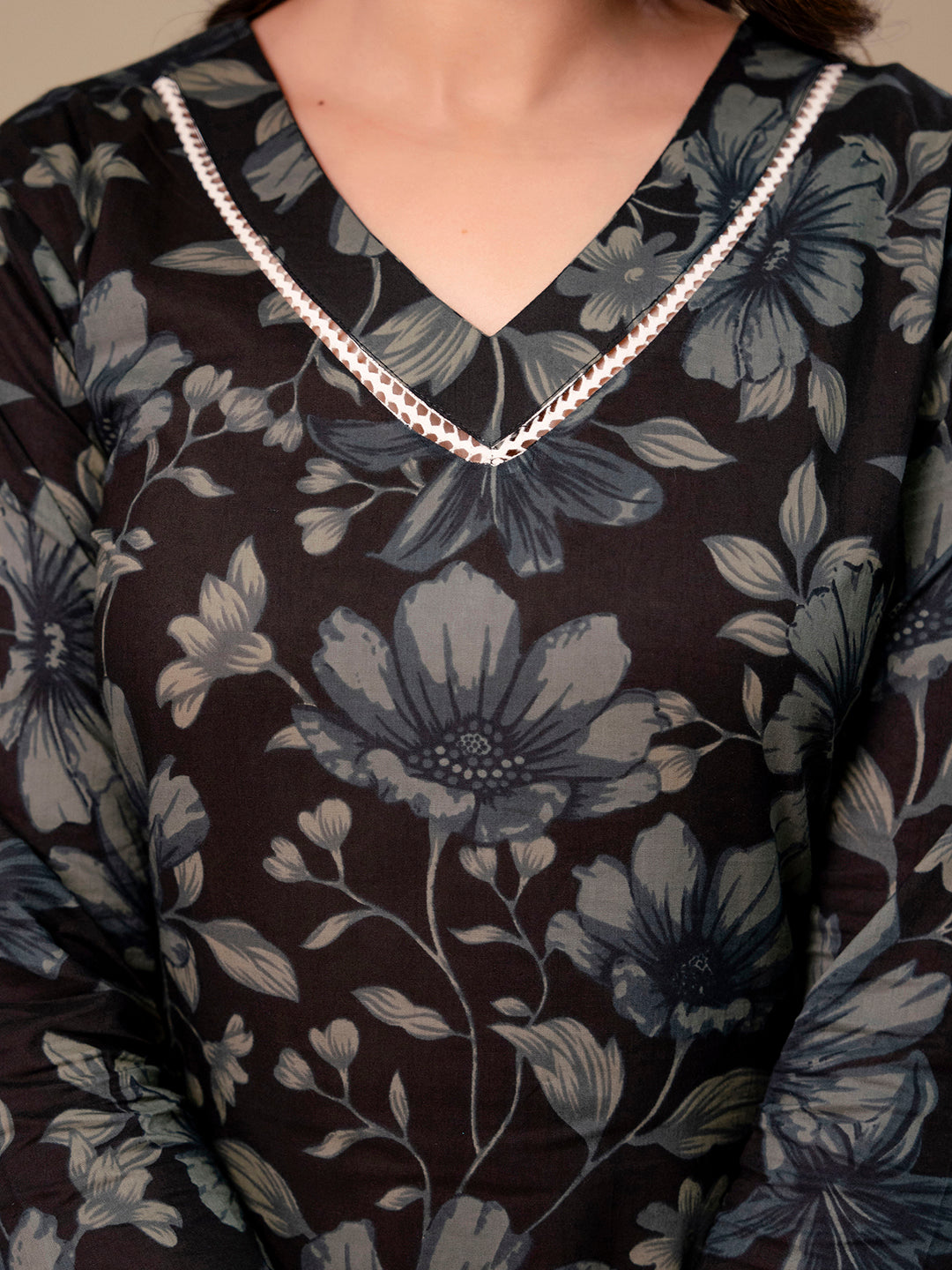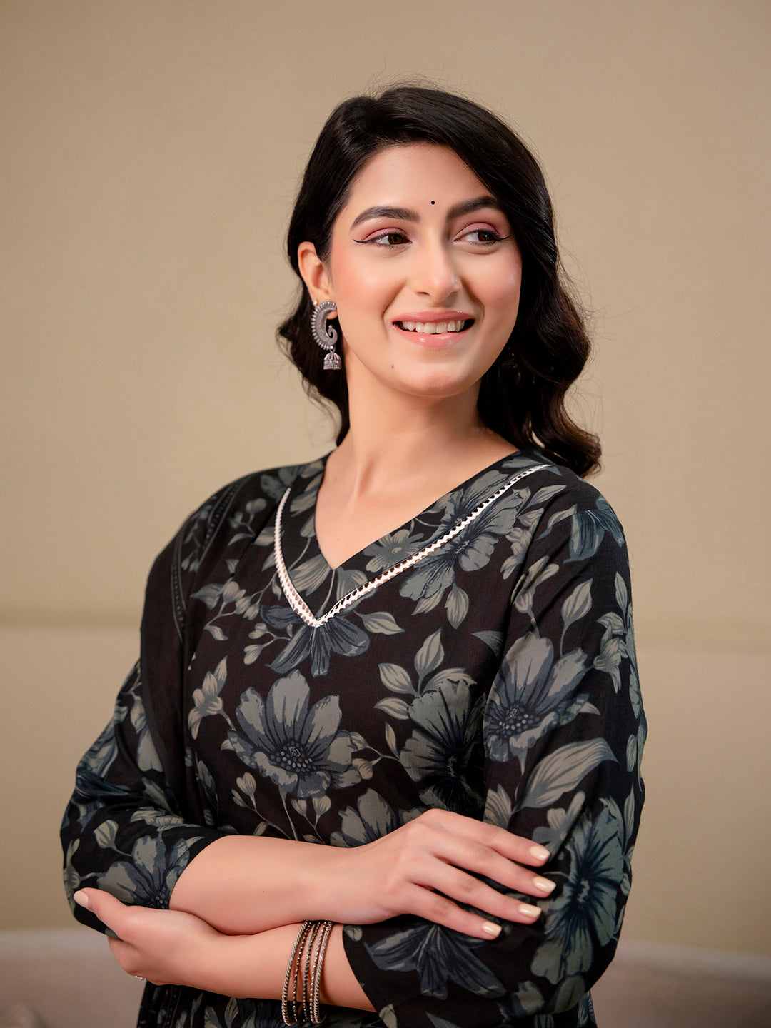 Printed Cotton Kurta Set with V-Neckline, Ankle-Length Pants and Graceful Dupatta