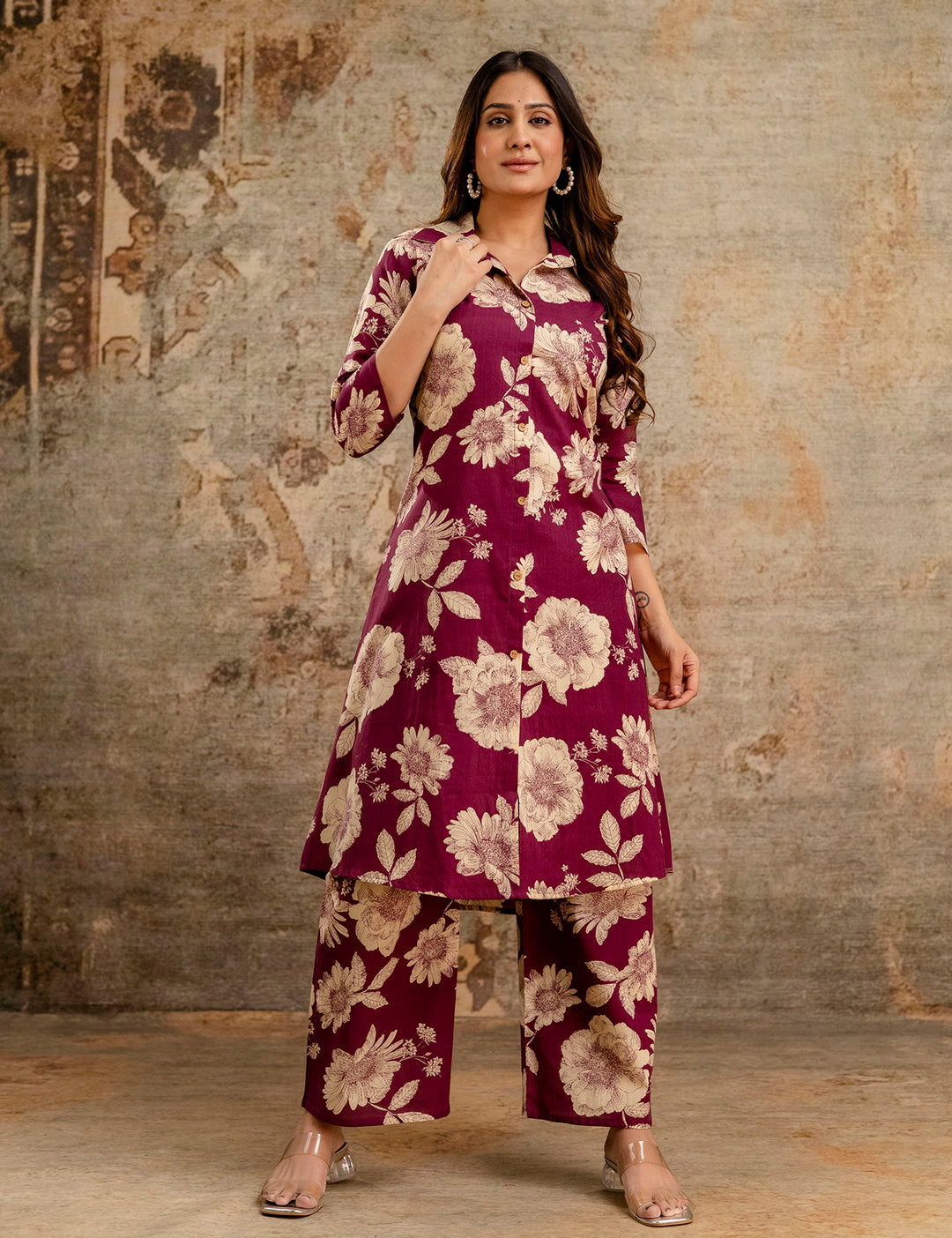 • Rich Purple Shade with Elegant Print• Smart Collared Kurta Design• Comfortable 3/4 Sleeves
