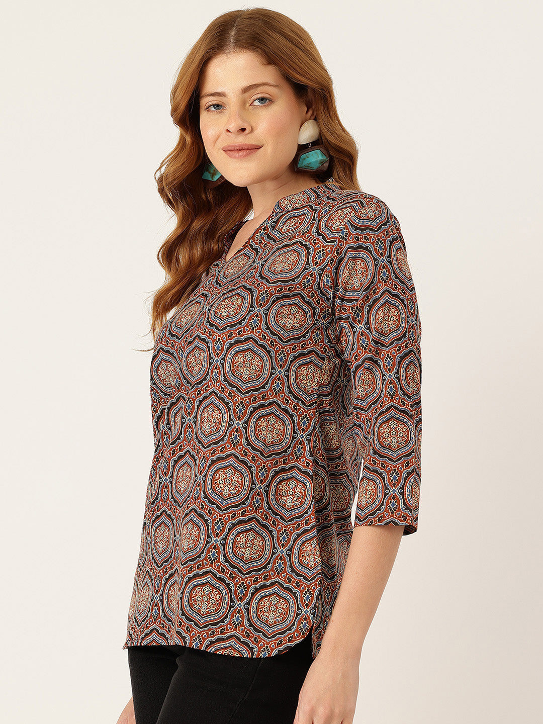Elevate your everyday wardrobe with our elegant Printed Kurti, featuring 3/4 sleeves and a smart mandarin neckline for a polished, contemporary look. Crafted from soft, breathable fabric, this kurti showcases beautiful prints that add a touch of charm and vibrance to your outfit. Designed with practical side slits for easy movement and all-day comfort, it’s the perfect choice for casual outings, office wear, or relaxed weekend plans. Available in sizes S to XXL, this versatile piece pairs effortlessly with jeans, leggings, or palazzos, offering a flattering fit and timeless appeal for any occasion.
