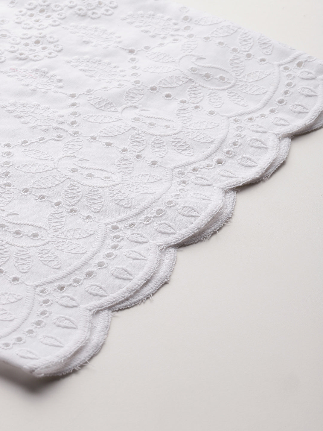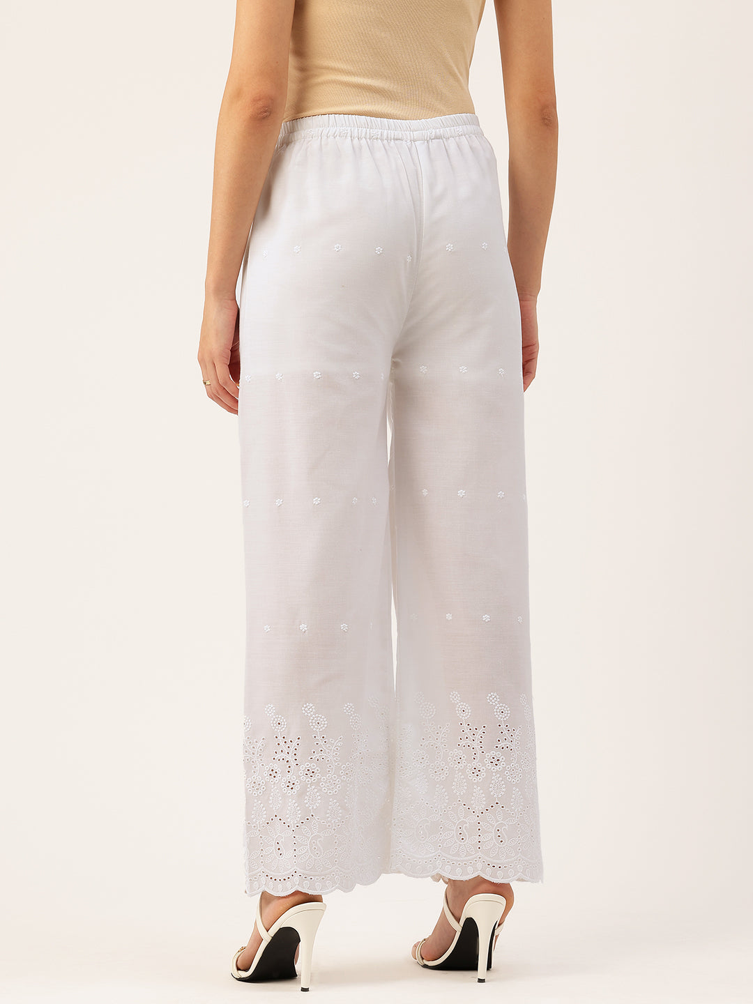 White Embroidered Palazzos–Fully Lined, Elastic Waist & Ankle-Length with Side Pocket