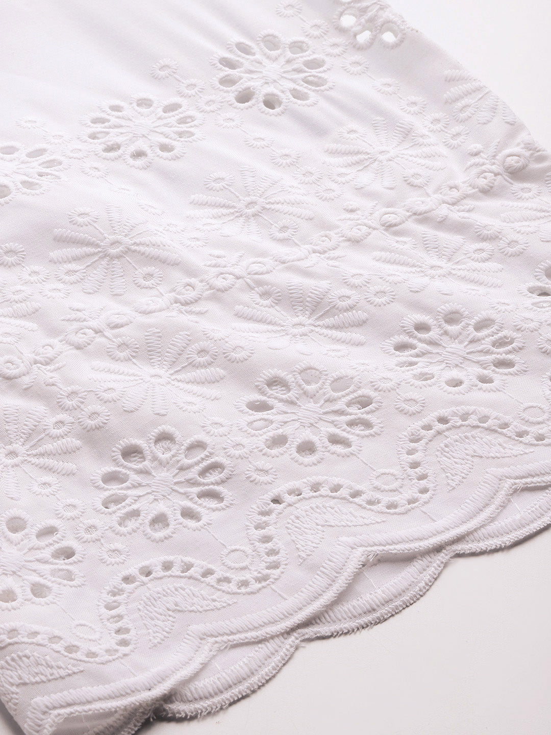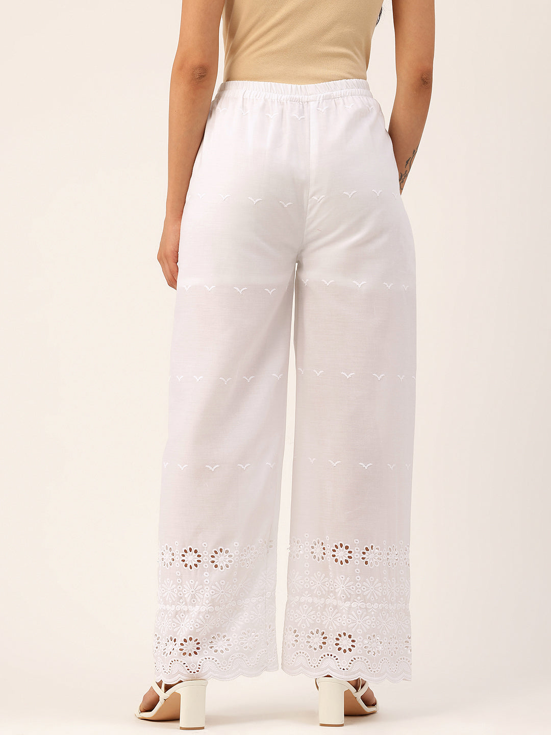 White Embroidered Palazzos–Fully Lined, Elastic Waist & Ankle-Length with Side Pocket