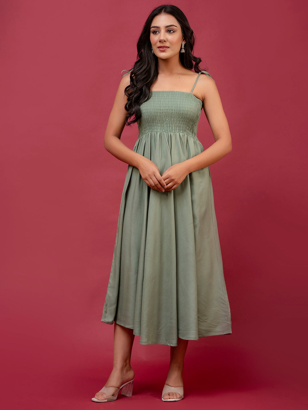 Elevate your everyday style with our Sleeveless Rayon Dress, crafted from soft, breathable rayon fabric to keep you comfortable and cool all day long. Designed with a smocked shirred bodice that gently hugs your curves, this dress offers a flattering fit without compromising on comfort.