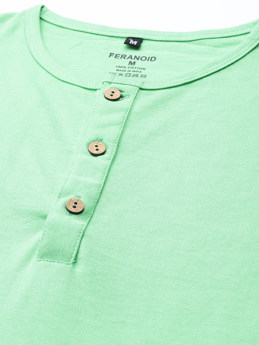 Plain Lime Green Henley Full Sleeves T-Shirt