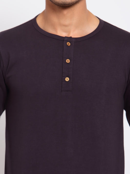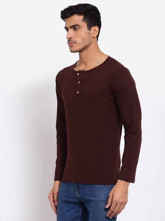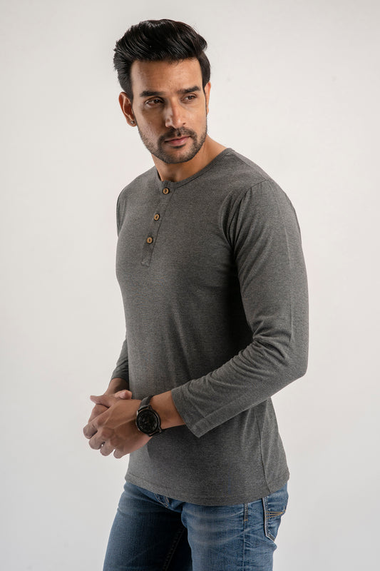 Plain Dark Grey Henley Full Sleeves T-Shirt