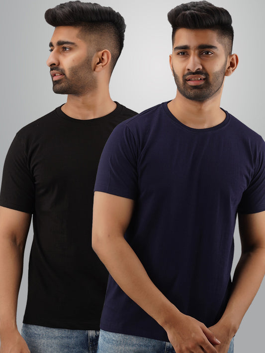 Plain Half Sleeves Pack Of Two Black And Blue T-Shirts