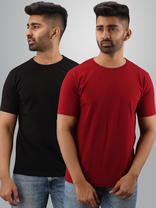 Plain Half Sleeves Pack Of Two Black And Maroon T-Shirts