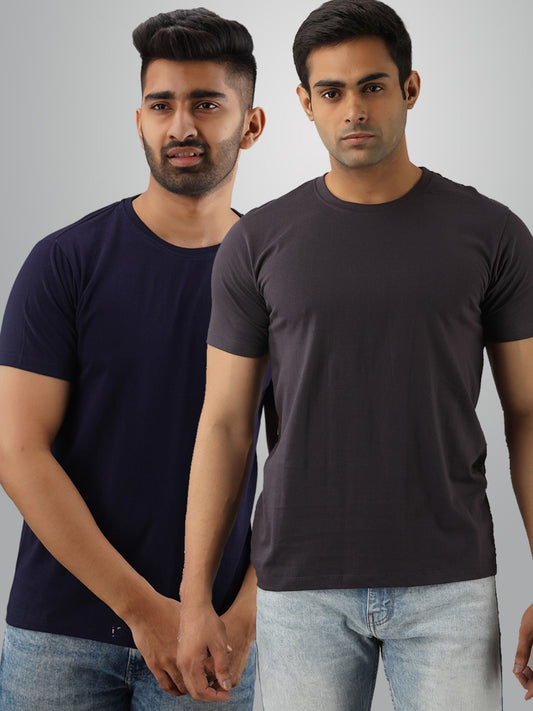 Plain Half Sleeves Pack Of Two Blue And Grey T-Shirts