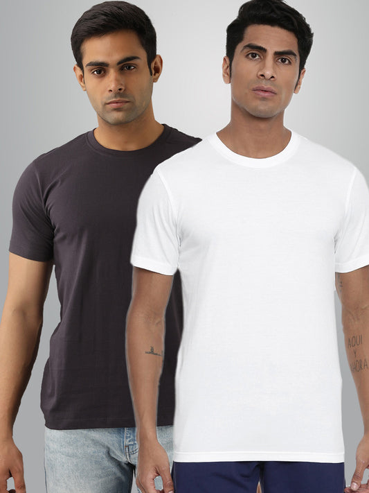 Plain Half Sleeves Pack Of Two Grey And White T-Shirts