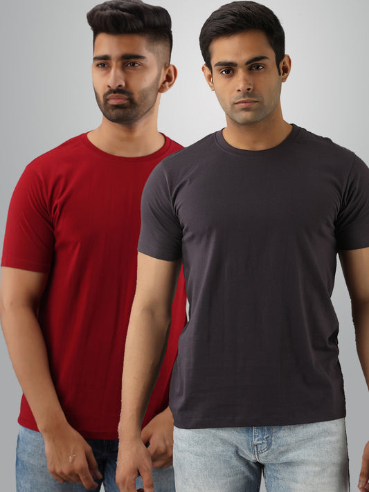 Plain Half Sleeves Pack Of Two Maroon And Grey T-Shirts