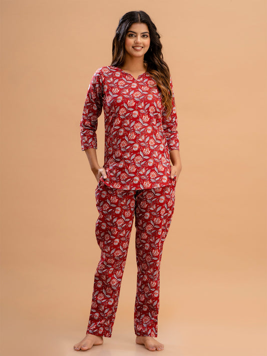 Floral Printed Pure Cotton Night Suits FRLW9026