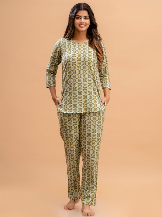 Floral Printed Pure Cotton Night Suits FRLW9048