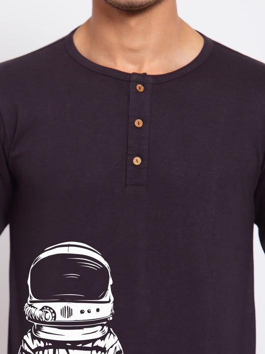 Space Boy Grey Henley Full Sleeves T-Shirt