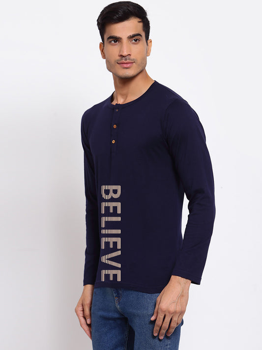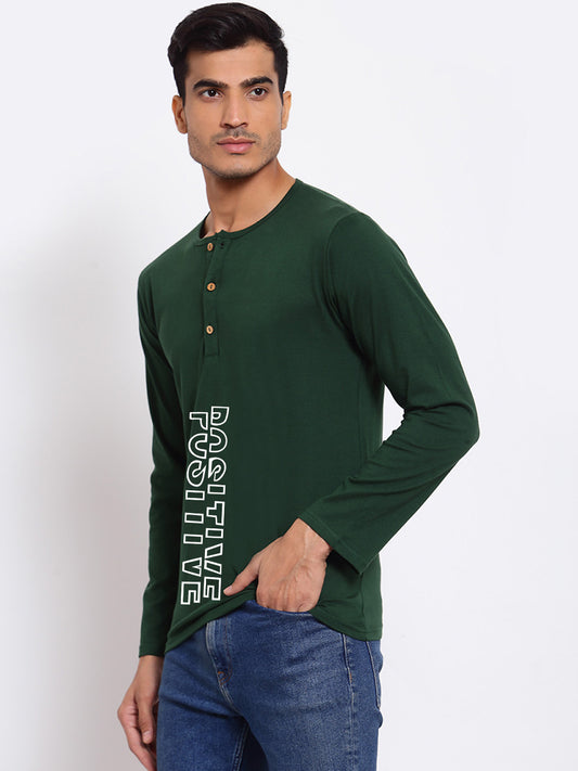 Rise Teal Blue Henley Full Sleeves T-Shirt