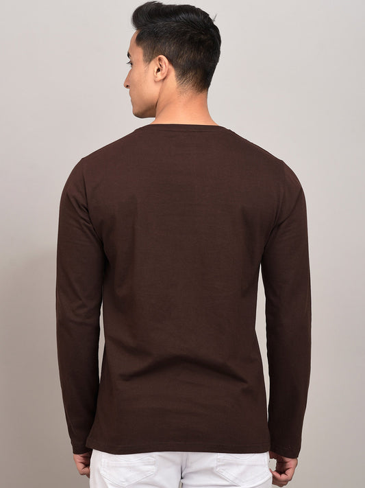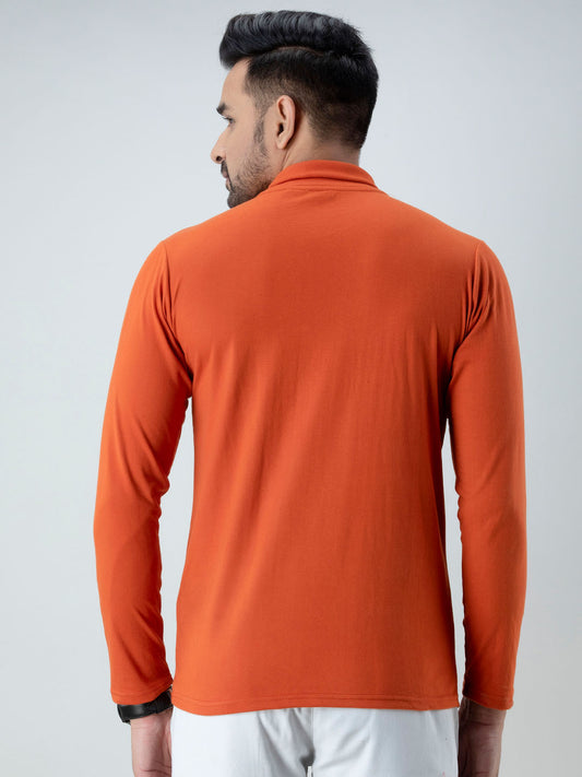 Plain Rust Brown High Neck Full Sleeves T-Shirt
