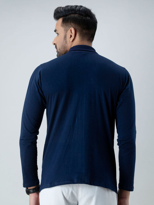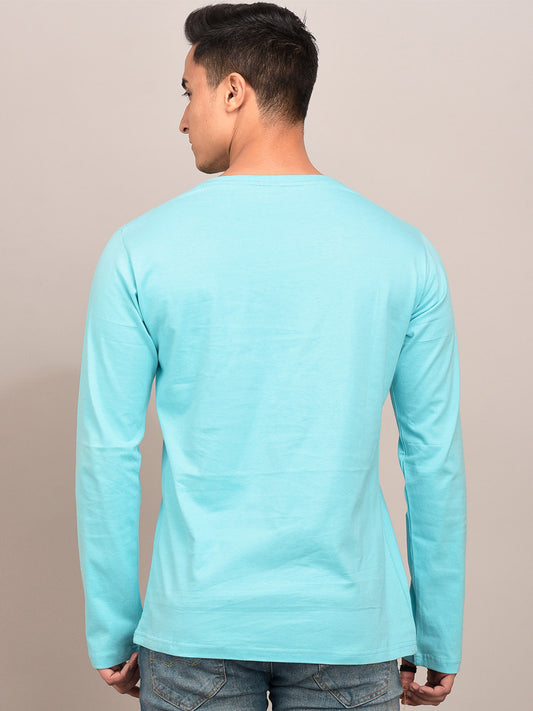 Plain Teal Blue Henley Full Sleeves T-Shirt