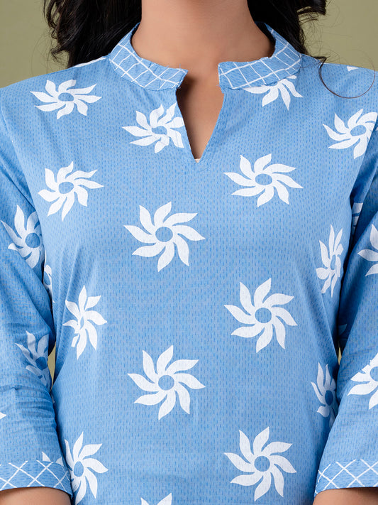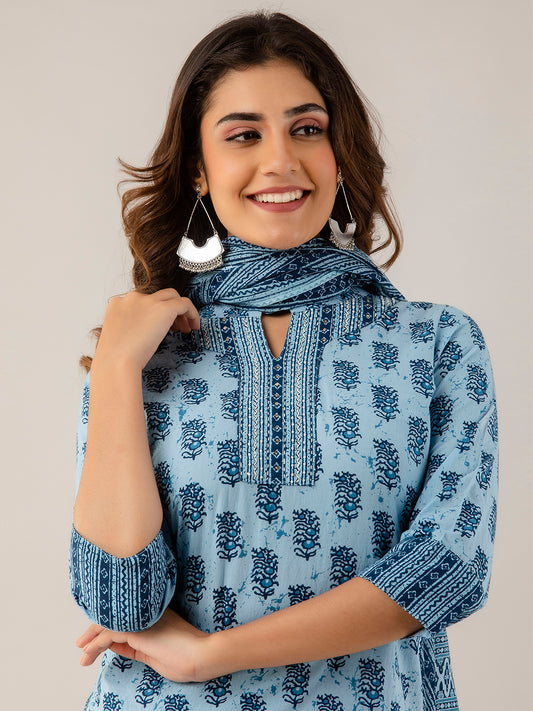 COTTON PRINTED GREY KURTA SET WITH DUPATTA